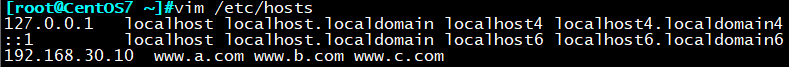配置DNS解析,为了方便模拟,我们就在/etc/hosts文件中配置解析